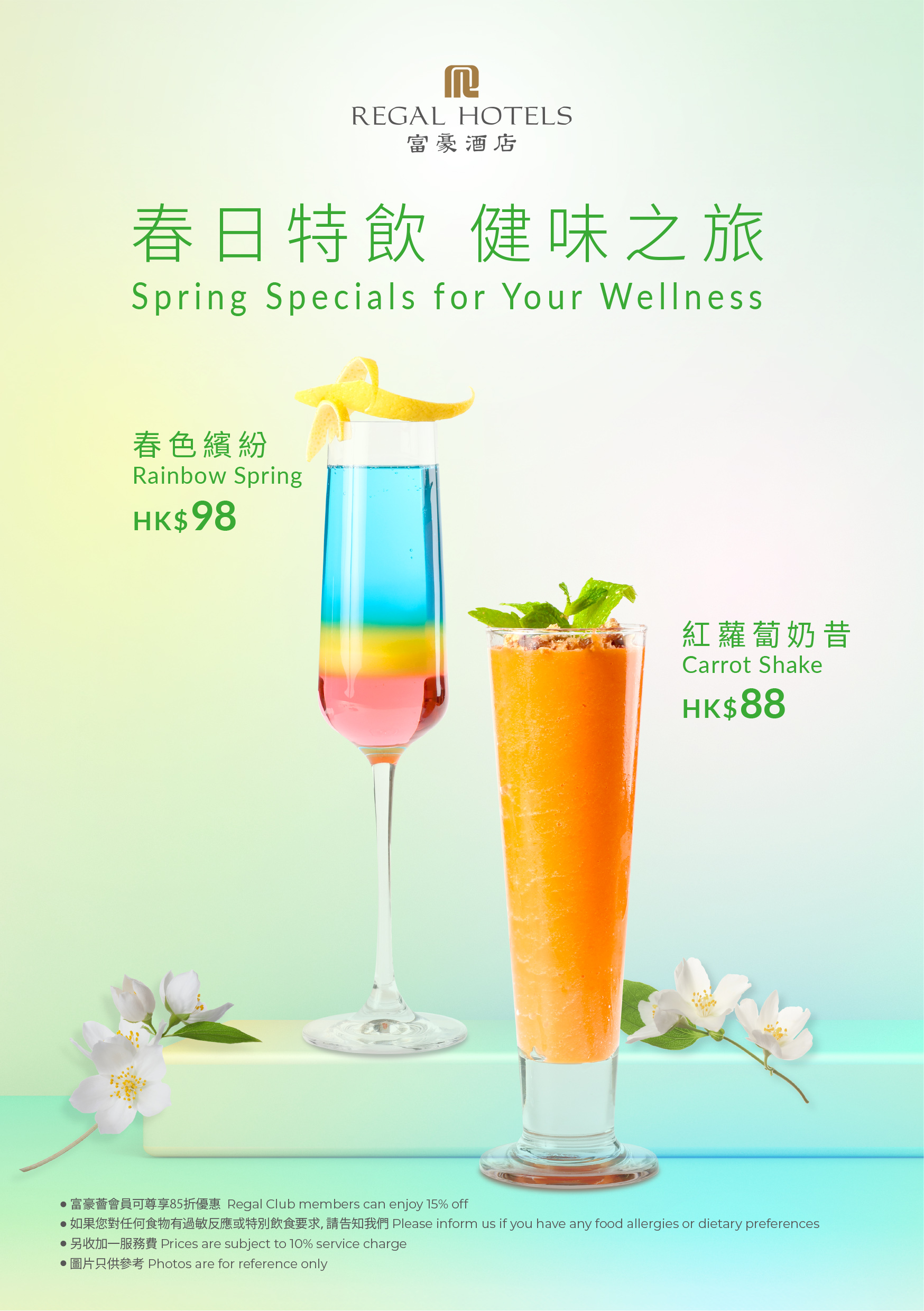 《春養身心 健味之旅》菜式由即日至5月4日期間於富豪酒店指定中菜廳供應。富豪薈會員更可尊享85折優惠*。